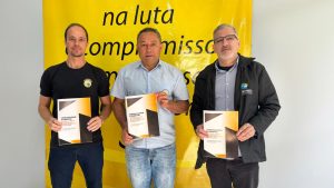 Presidente e diretor da Fetramesc realizam entrega de Informativo ‘Sindicalismo e Direito’ ao presidente da NCST-SC