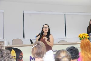 Com uma abordagem dinâmica e envolvente, Cristiane propôs uma reflexão direta às participantes: quantas ideias permanecem guardadas, quantos projetos são deixados de lado por medo, insegurança ou por se sentir insuficiente? “Hoje quero colocar o seu cérebro no viva-voz”, provocou a palestrante, ao destacar o quanto as mulheres tendem a se calar diante das próprias potências.