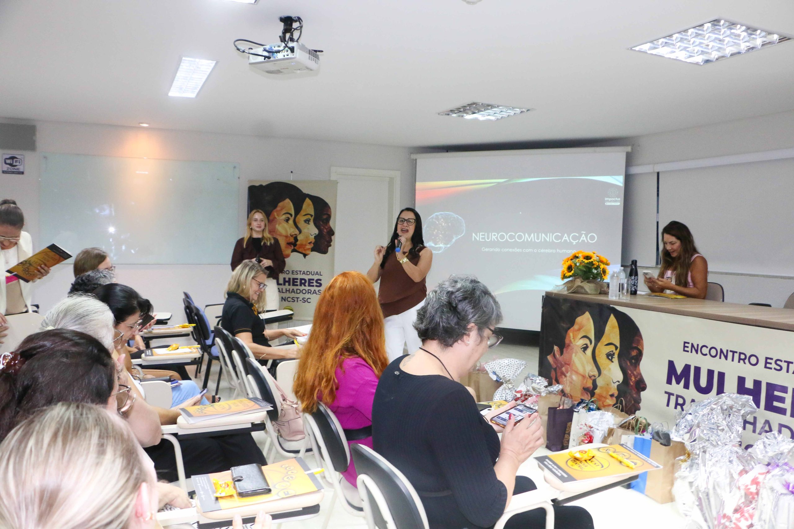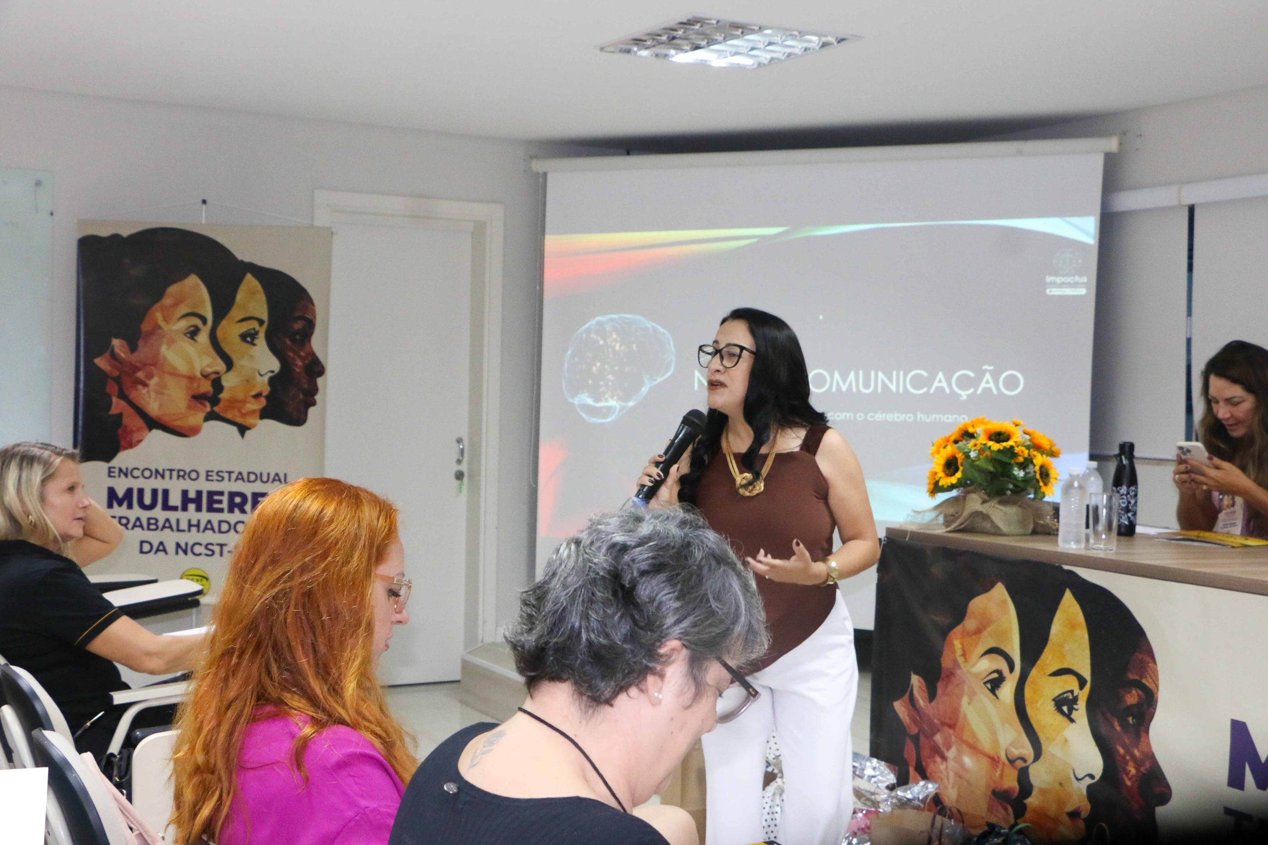 A programação do 10º Encontro das Mulheres Trabalhadoras da Nova Central Sindical de Trabalhadores de Santa Catarina (NCST-SC) seguiu nesta sexta-feira, 4 de abril, com a palestra “Neurocomunicação: gerando conexões com o cérebro humano”, conduzida pela especialista Cristiane da Luz Oliveira.